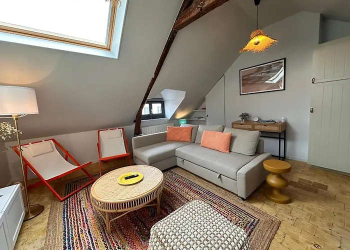 דירה נעים וביתי Charmant Appartement Honfleur A 2 Pas Du Port Hyper Centre ממוקמת בהונפלר במרחק של 6 דקות הליכה מ-Greniers à sel. במקום ישנו מטבח מאובזר המצויד בקומקום חשמלי, מקרר ותנור.